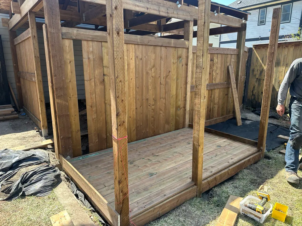 This Combo project. Carpot, Shed, Wood dryer design and build project by Buhai Construction involved creating a custom deck for a residential